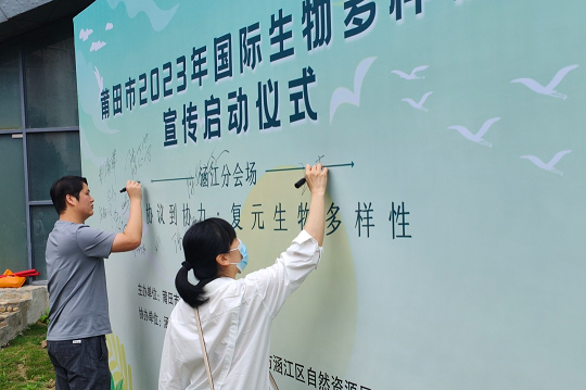 活动期间,涵江生态环境局代表宣读了本次活动意义目的,带头在启动仪式上签名,用实际行动践行保护生物多样性的初衷;带领群众和干部参观老鹰尖自然保护区标本展示馆,近距离接触多样性的野生动植物,提升群众探寻生物多样性的认知与兴趣。