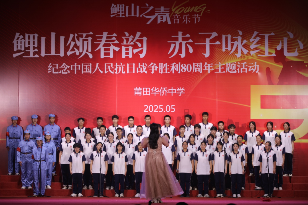 5月14日,“鲤山颂春韵,赤子咏红心” 纪念中国人民抗日战争胜利 80 周年校园合唱比赛在莆田华侨中学体育馆举行,该校七年级、高一年段全体师生齐聚一堂,用歌声致敬历史,礼赞祖国。