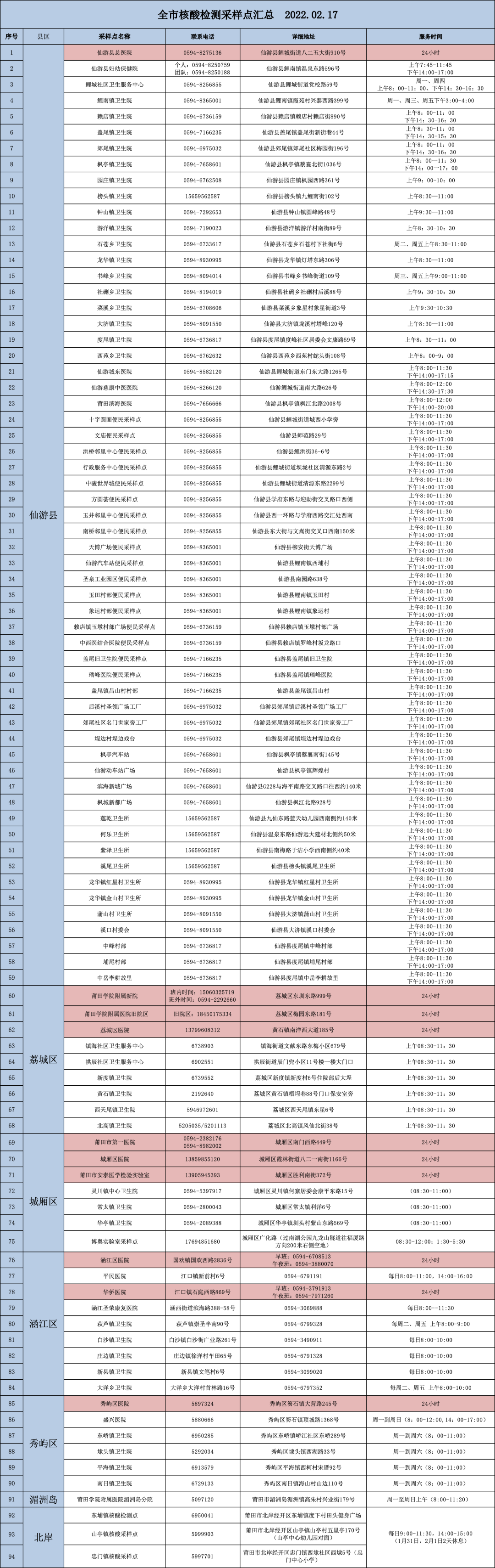 莆田疾控汇总:最新全市核酸检测采样点名单(2月17日)
