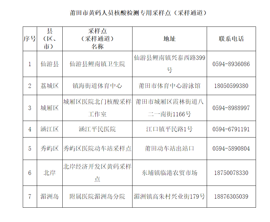 莆田市黄码人员核酸检测专用采样点(采样通道)