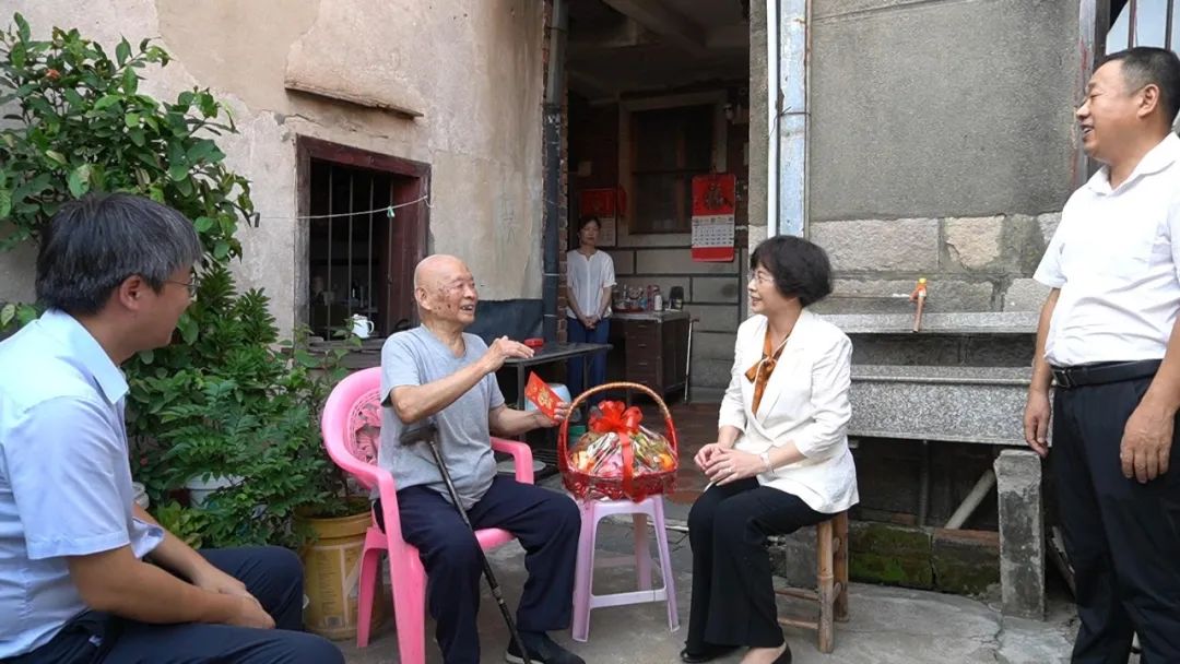 “祝您健康长寿,阖家幸福!”带着对老人的美好祝愿,连向红一行先后来到涵东街道顶铺社区、霞徐社区,看望慰问百岁老人林珍治、吴料法。