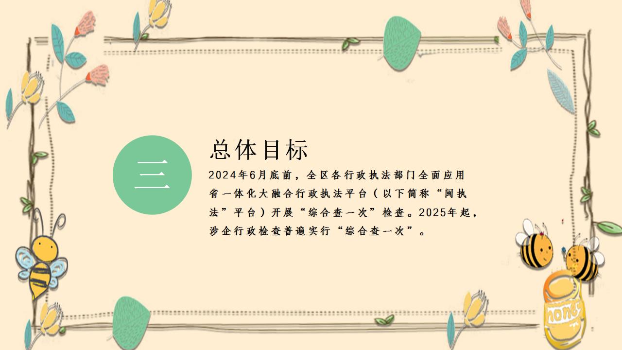 2024年6月底前,全区各行政执法部门全面应用省一体化大融合行政执法平台(以下简称“闽执法”平台)开展“综合查一次”检查。2025年起,涉企行政检查普遍实行“综合查一次”。