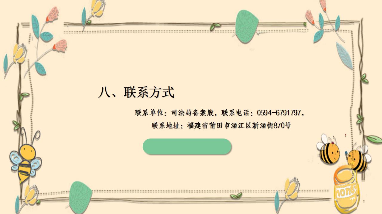 联系单位:司法局备案股,联系电话:0594-6791797,联系地址:福建省莆田市涵江区新涵街870号