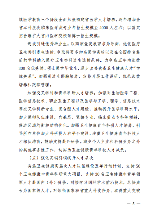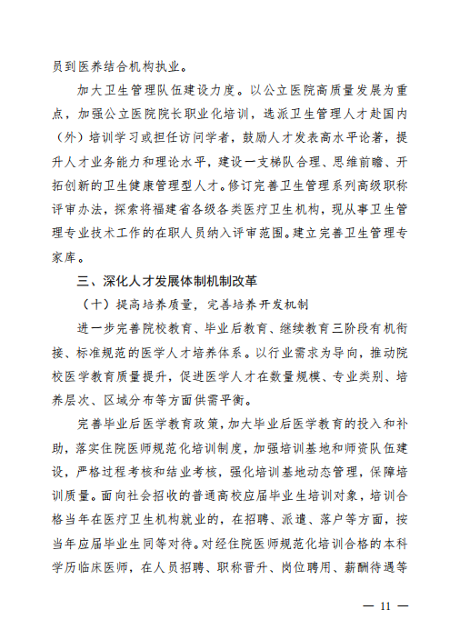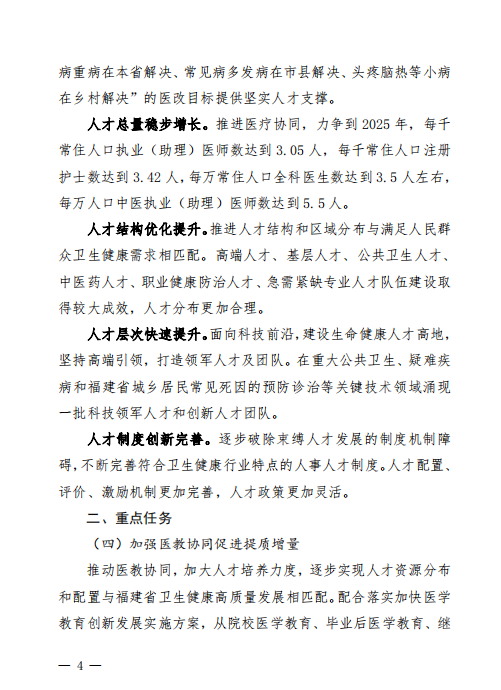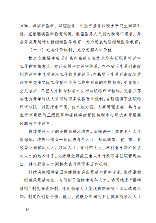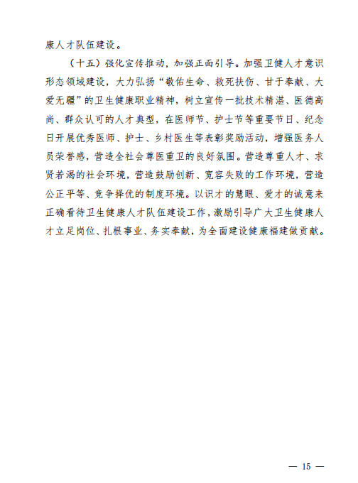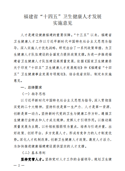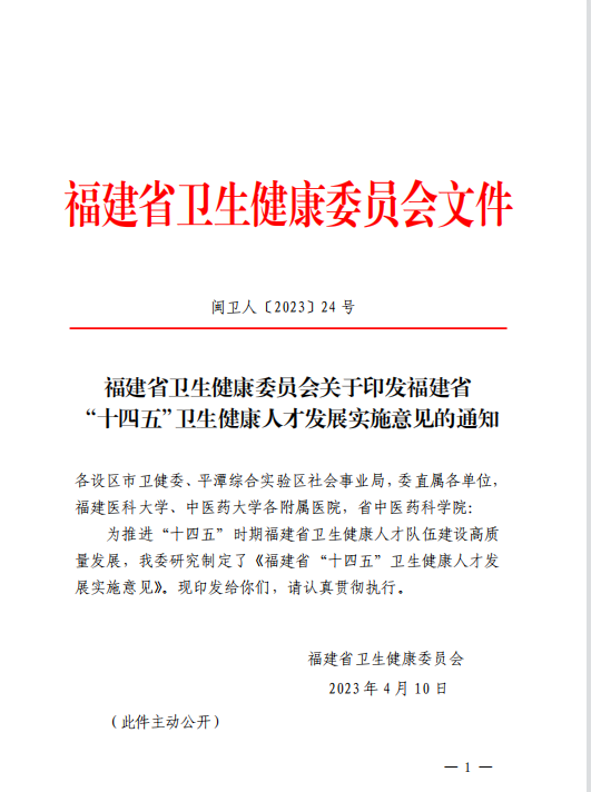 (转)福建省卫生健康委员会关于印发福建省“十四五”卫生健康人才发展实施意见的通知