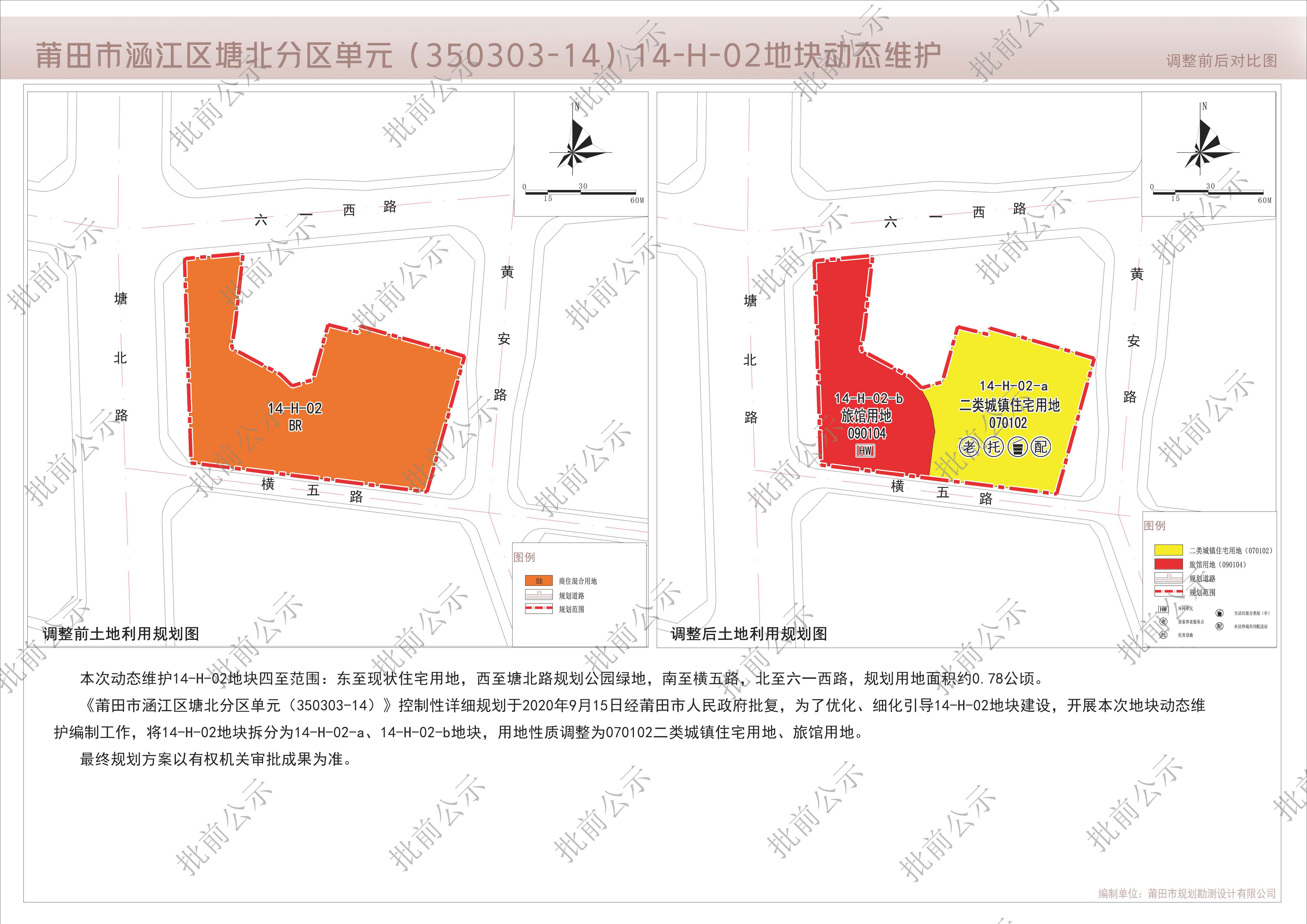 附件:《莆田市涵江区塘北分区单元(350303-14)14-H-02地块动态维护》公示内容