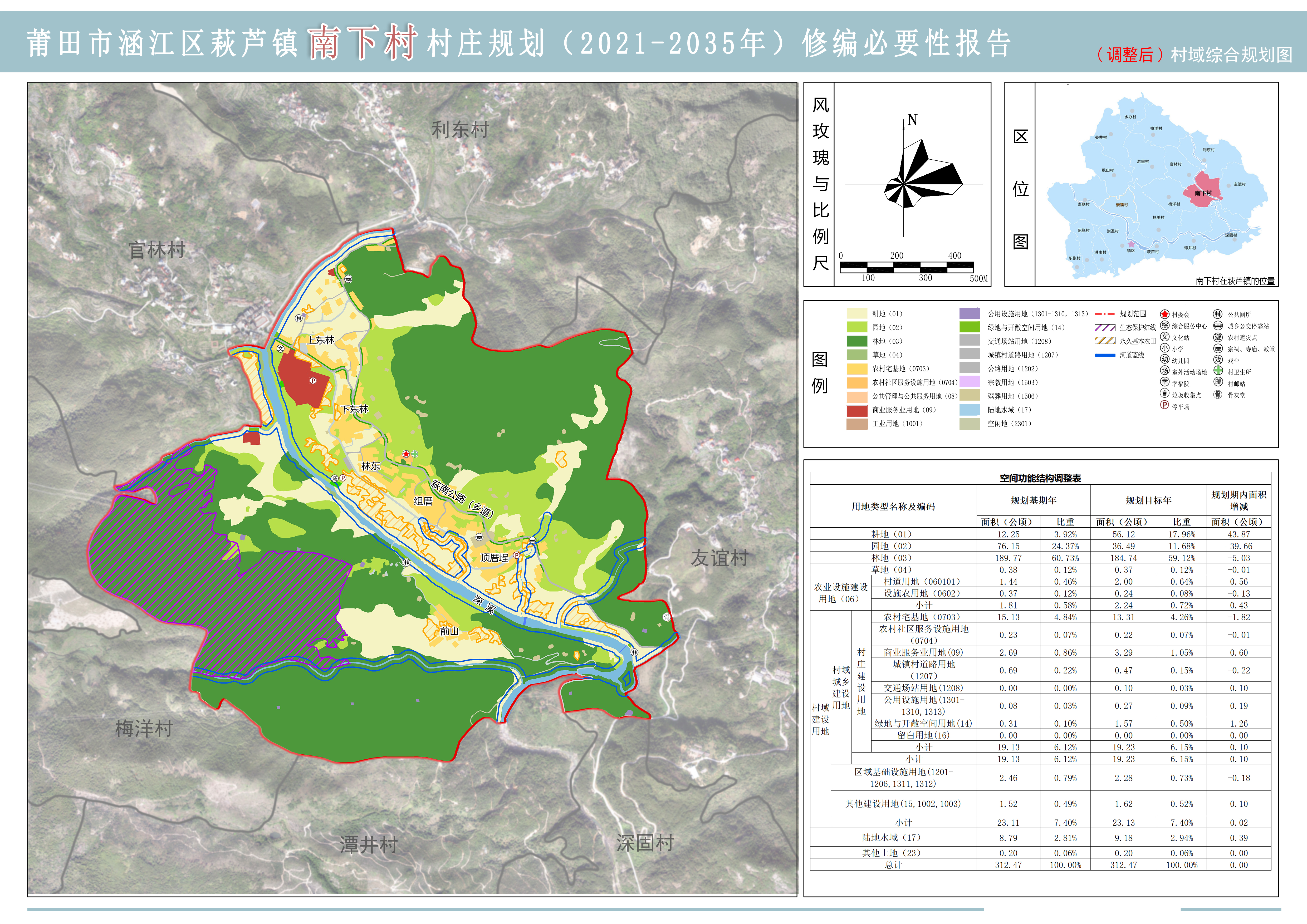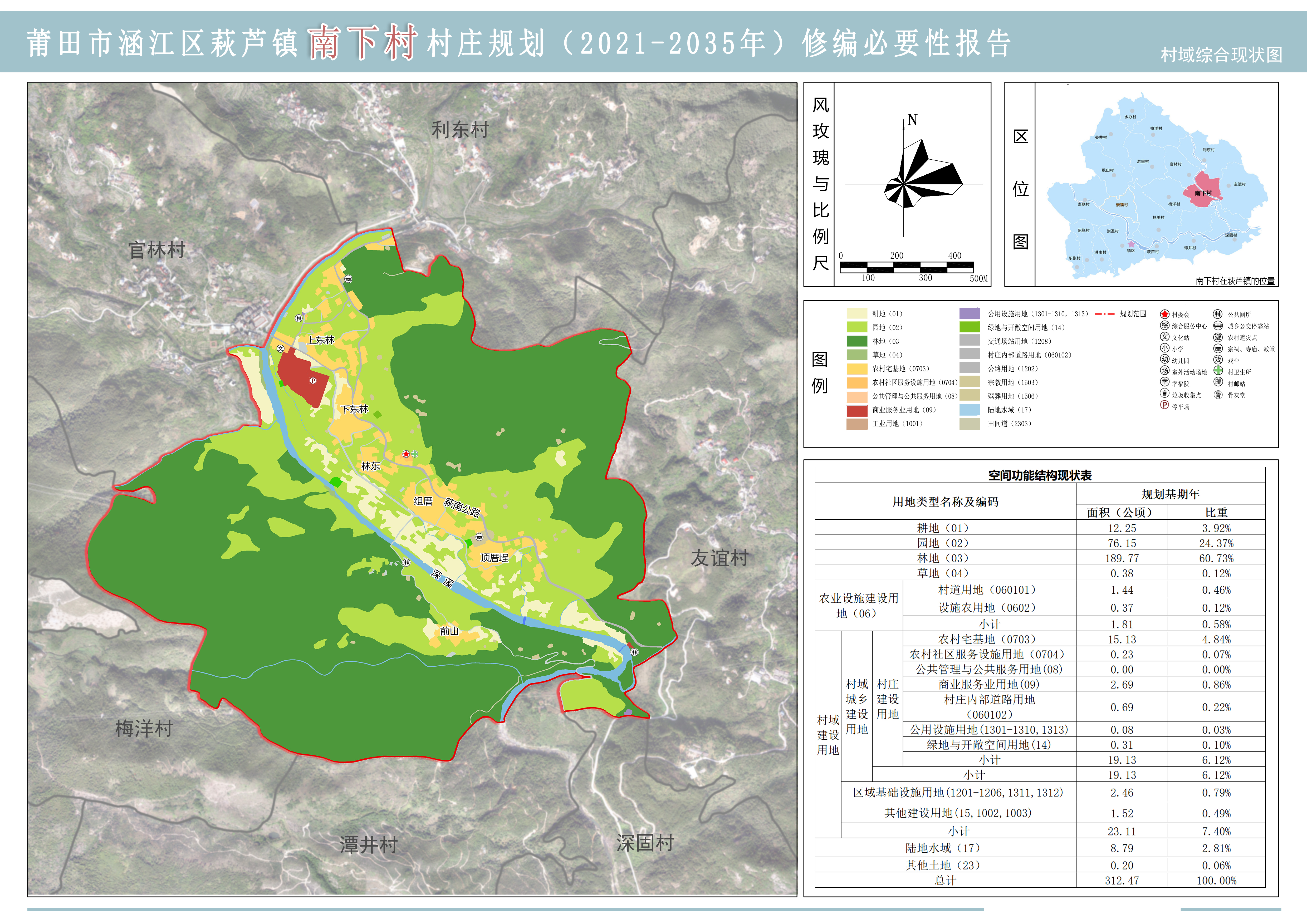 南下村位于萩芦镇中部,东邻友谊村,南接潭井、深固两村,西与官林村、梅洋村相连,北靠利东村。《莆田市涵江区萩芦镇南下村村庄规划(2021-2035)》于2021年10月15日,经涵江区人民政府批复实施(涵政综〔2021〕111号)。为进一步街接“三区三线”管控要求,落实其它相关管控要求,满足南下村实际建设需求,为村庄各类开发建设活动提供规划依据,拟对原村庄规划进行修编。