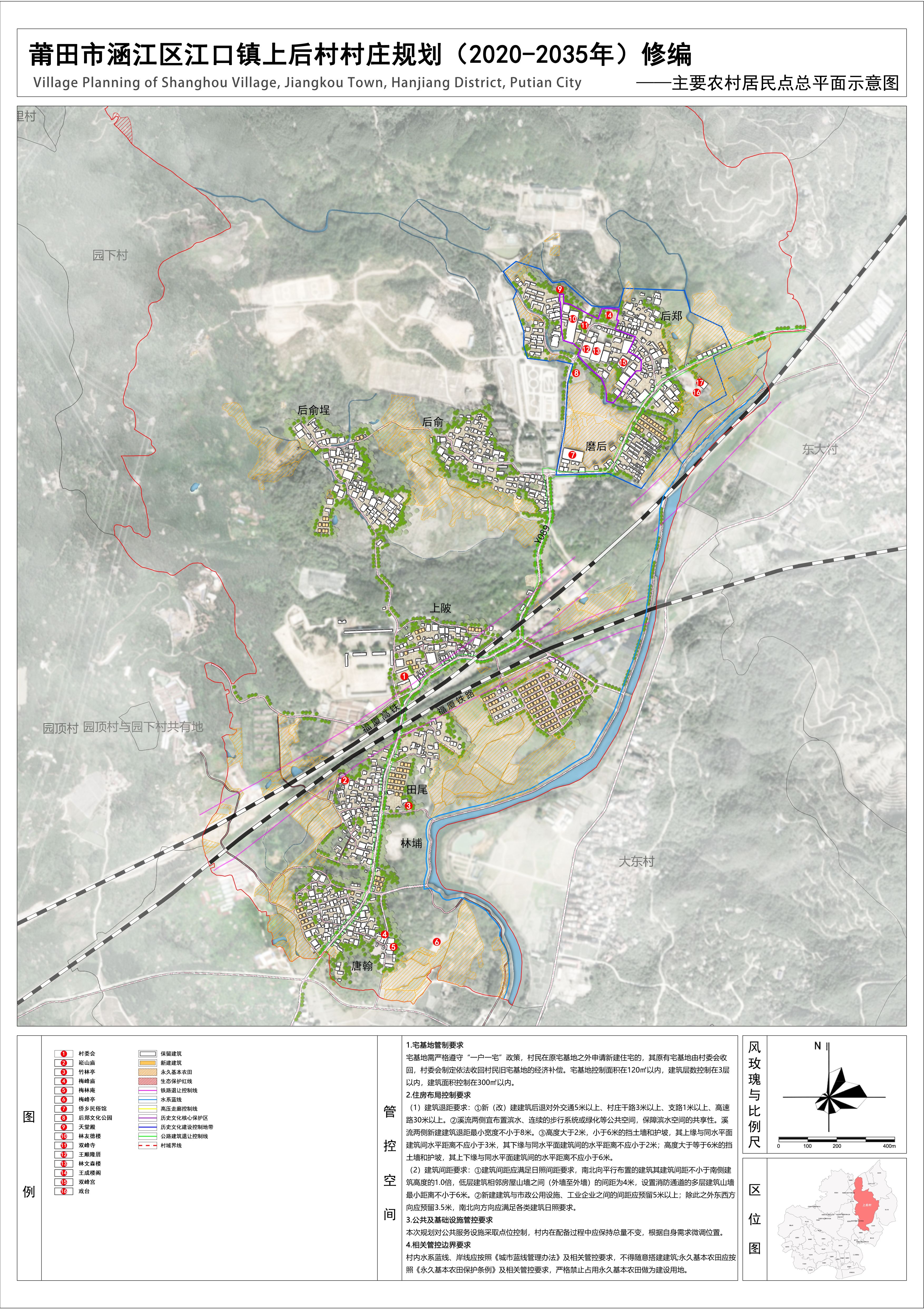 上后村位于蒜溪之畔,东与大东村、东大村毗邻,北与官庄村毗邻,西接园下村、园顶村,南与顶坡村接壤。《莆田市涵江区江口镇上后村村庄规划(2020-2035年)》于2021年4月9日经莆田市涵江区人民政府批复实施,批文号为涵政综〔2021〕32号。为进一步衔接“三区三线”管控要求,落实其它相关管控要求,满足上后村实际建设需求,为村庄各类开发建设活动提供规划依据,拟对原村庄规划进行修编。