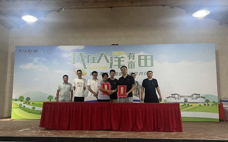活动现场,志愿者代表在大洋乡车口村知青礼堂举行了“我在大洋有亩田”认领签约仪式,以出资方式委托莆田市涵江区车口农业开发有限公司代耕参与粮食生产,助力撂荒地复耕复种。