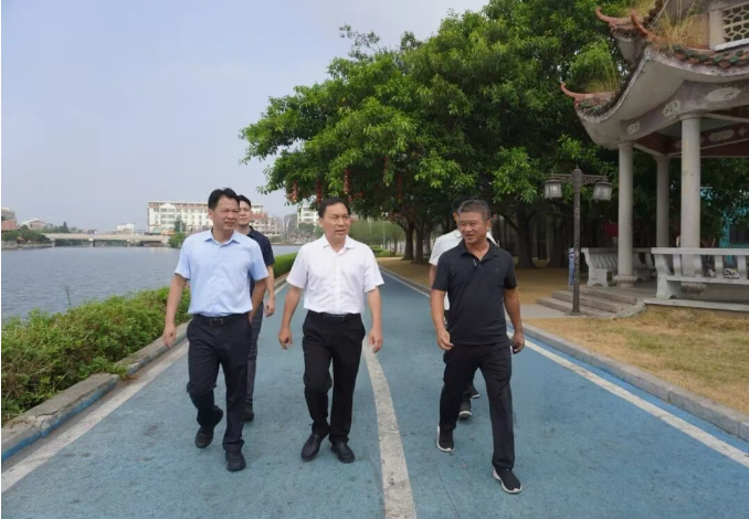 随后,郑群星一行沿着白塘湖福道步行至洋尾村,沿途察看河道整治、乡村业态、清风步道廉洁文化墙绘等情况,详细了解白塘镇农文旅片区项目进展情况。