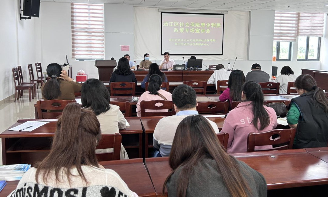 社会保险扩面工作是一项惠及千家万户的民心工程,为进一步提升企业群众对社保政策的知晓度,更好推进社会保险精准扩面行动,4月28日上午,涵江区人社局组织召开涵江区社会保险惠企利民政策专场宣讲会。