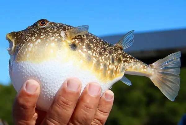 河豚又名河鲀,是一种无鳞鱼,它体态圆胖,腹皮呈白,遇敌害时能吸水吸气使胸腹膨大如球,所以也有人称其为“气泡鱼”。河豚的毒素主要分布于内脏、卵巢、血液、鱼皮、鱼头等部位,其中内脏和卵巢的毒性最强。食用野生河豚很容易因加工处理不当导致中毒。