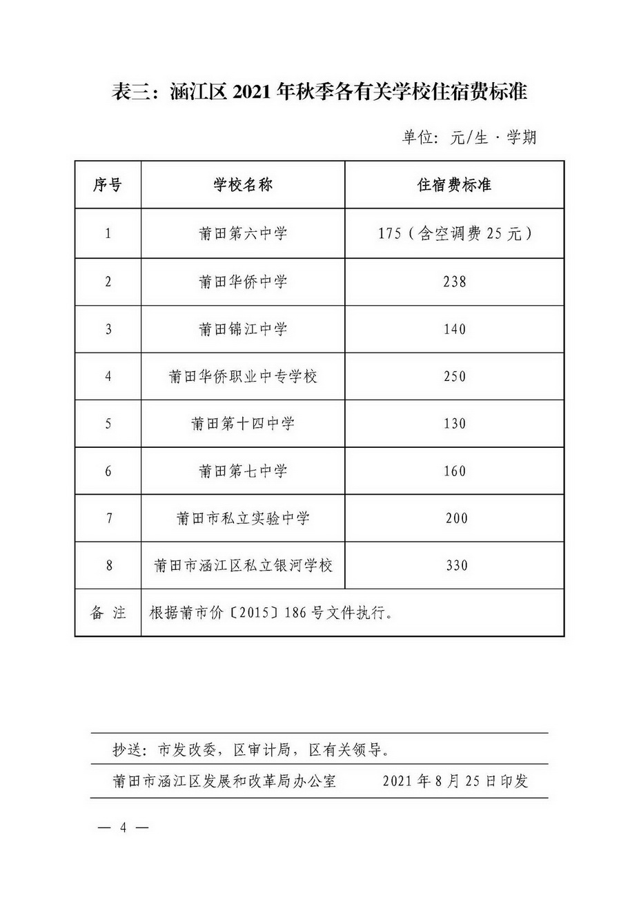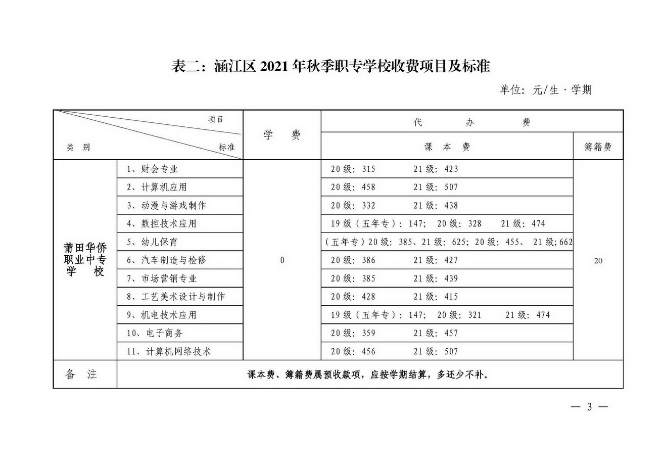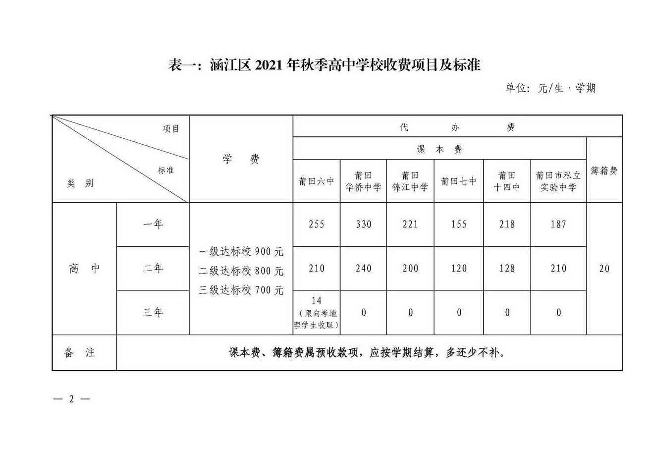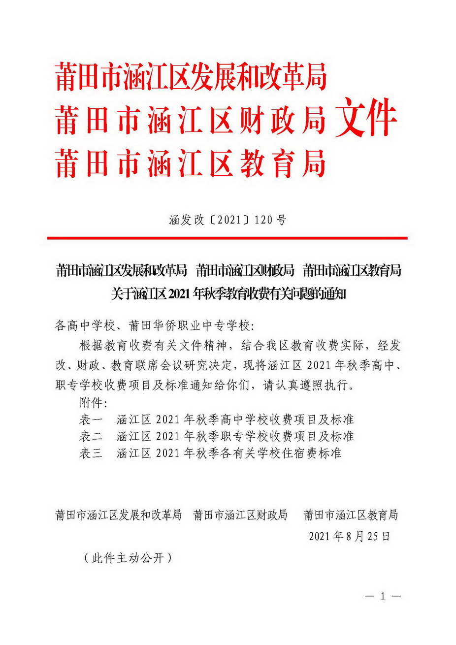 莆田市涵江区发展和改革局莆田市涵江区财政局莆田市涵江区教育局关于涵江区2021年秋季教育收费有关问题的通知